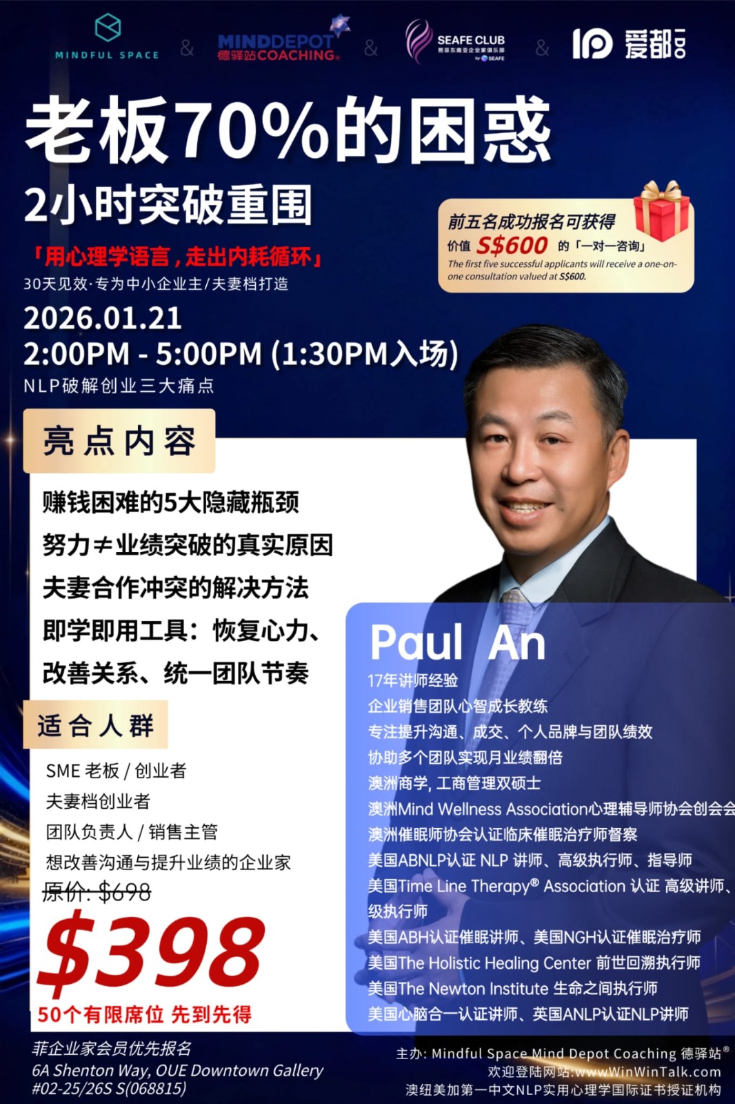 澳洲 No.1 心理学NLP导师团队 · 2小时系统拆解创始人最深的三个困局|专为中小企业主与联合创始人设计