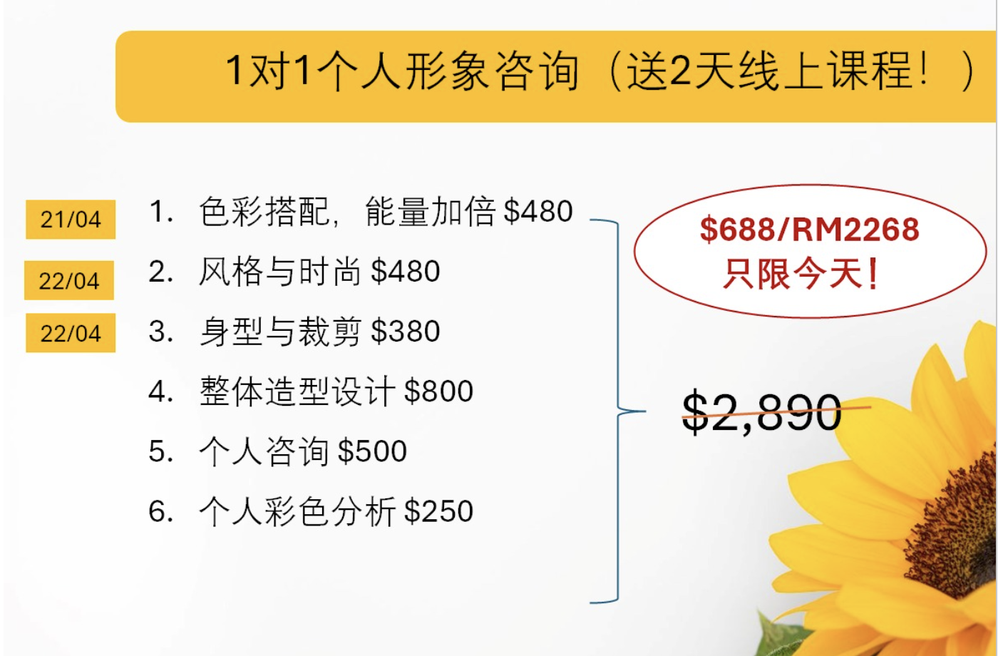 • Color Coordination, Double the Energy 色彩搭配,能量加倍 worth $480